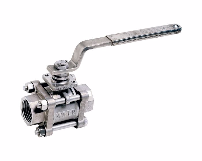 713 tűzbiztos ADLER gömbcsap-golyóscsap BSP menet 1/4" BB 3 részes CF8M ISO pad max100 bar hőmérséklet tart:-28 °C/+200°C
