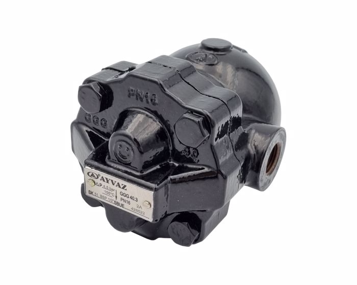 SK 51 menetes úszós, gömbgrafitos öntöttvas gőzleválasztó, automatikus légtelenítő úszóval, gömbgrafitos öntöttvas test (EN-GJS-400-18), beépített termosztatikus légtelenítő, PS: 16 bar, TS: 250°C, G menetes.