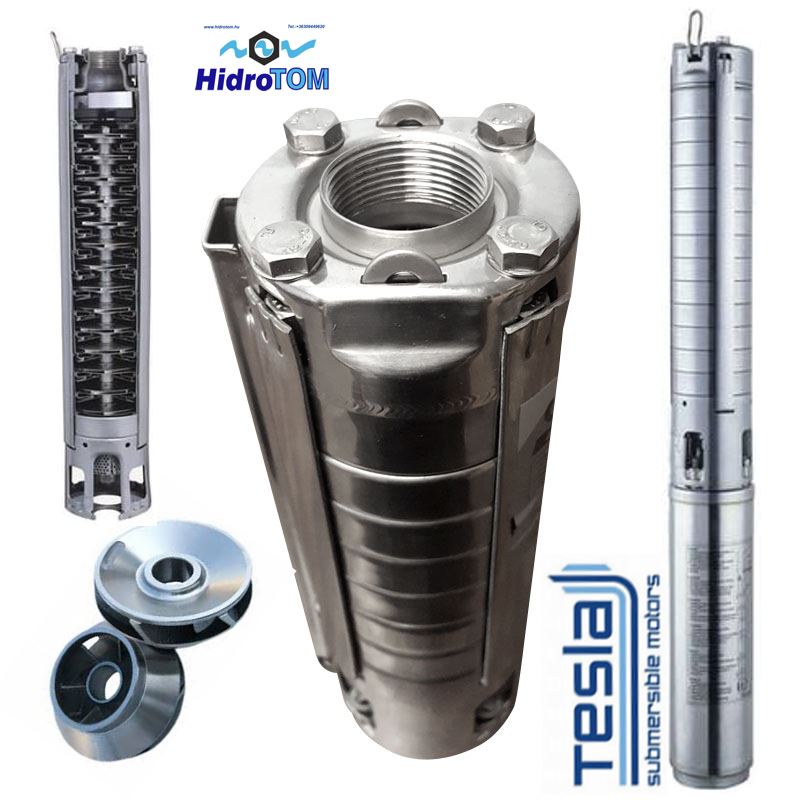 Tesla mélykút szivattyú, teljesen rozsdamentes kivitelű csőkút szivattyú, 4 eres külső kondenzátoros motorral .Tesla mélykúti szivattyúk-ban nincs műanyag akatrész ! Tesla búvármotoros csőbúvár szivattyú kiváló kopásállóság, folyamatos üzemű. Magas homoktartalmú kutakban is igen jól megállja a helyét a Tesla csőkút szivattyú. Kívánt kábelhosszal, toldva opciósan is rendelhető.