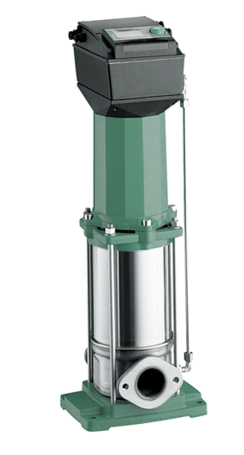Wilo-Multivert MVISE nedvestengelyű kivitelű, nagyhatásfokú többfokozatú nagynyomású centrifugálszivattyú, függőleges tengellyel, oválkarimás csatlakozással.